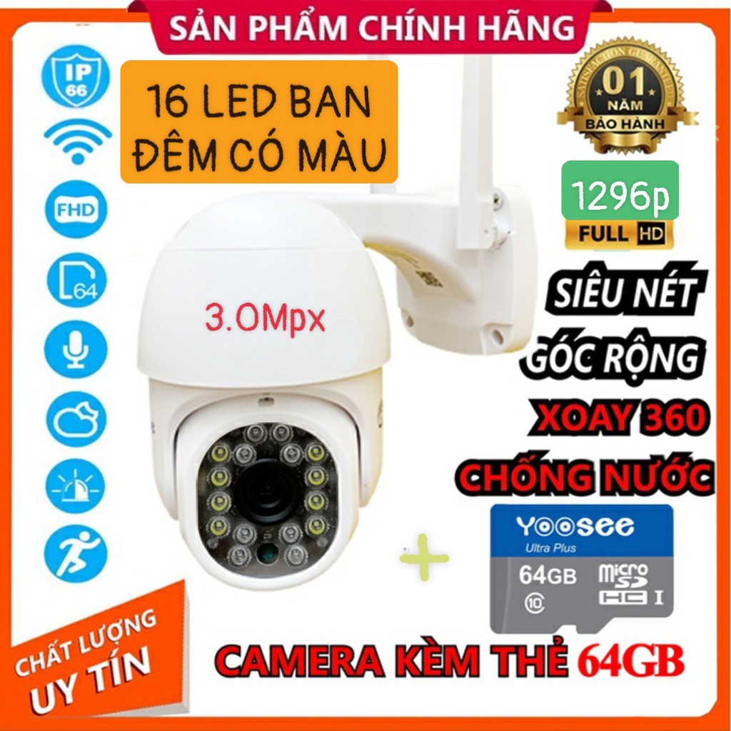 Freeship- Camera Yossee PTZ Xoay 360đ 3.0mpx (1296mpx), chống nước, Đàm thoại 2 chiều, Báo động chống trộm mua tại đây